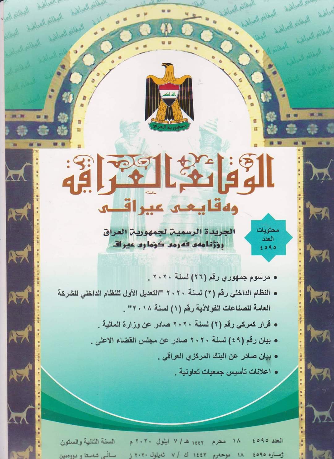 وزارة العدل تعلن عن صدور العدد الجديد من جريدة الوقائع العراقية بالرقم (4632)